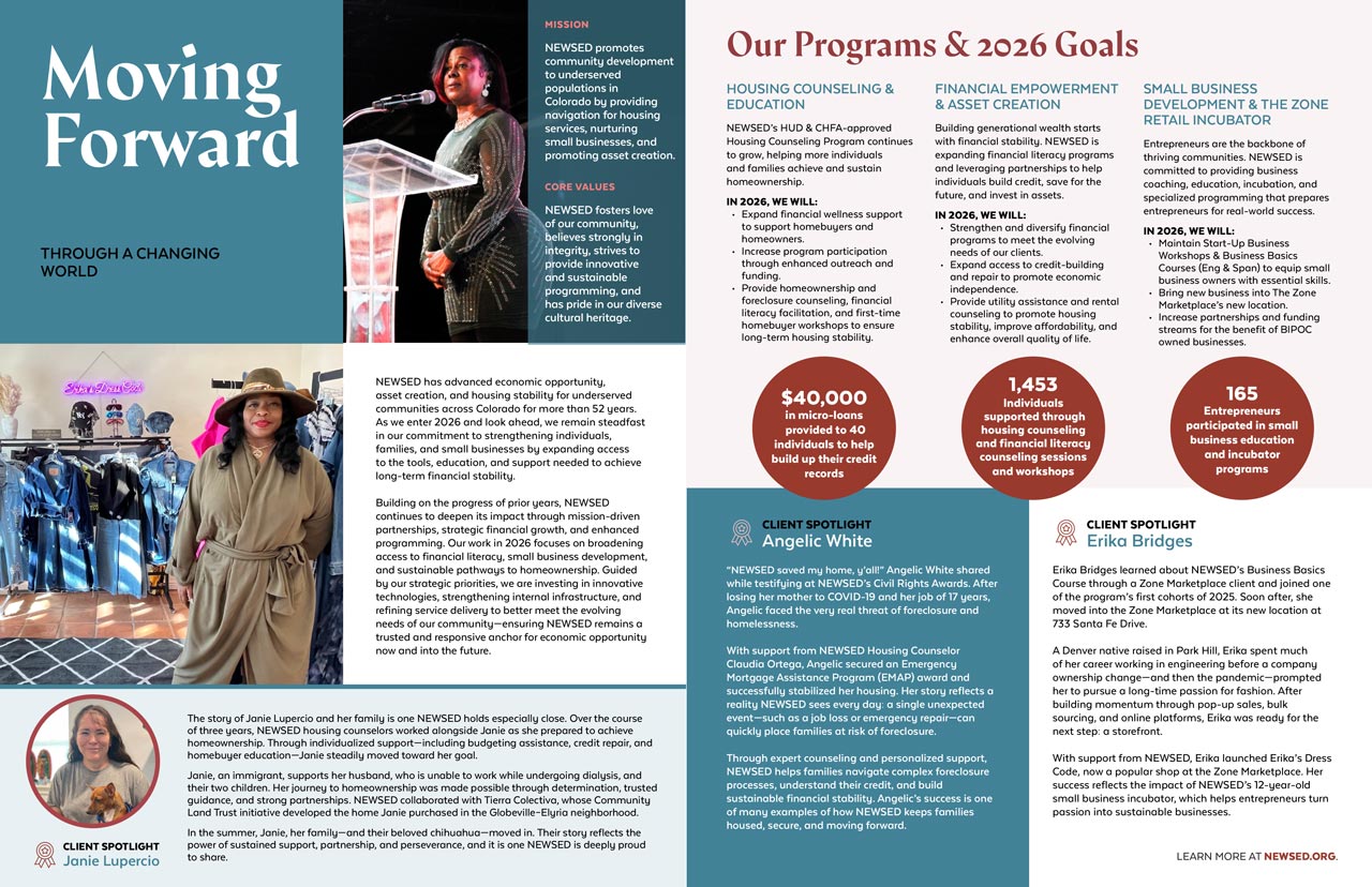 NEWSED promotes community development to underserved populations in Colorado by providing navigation for housing services, nurturing small businesses, and promoting asset creation.